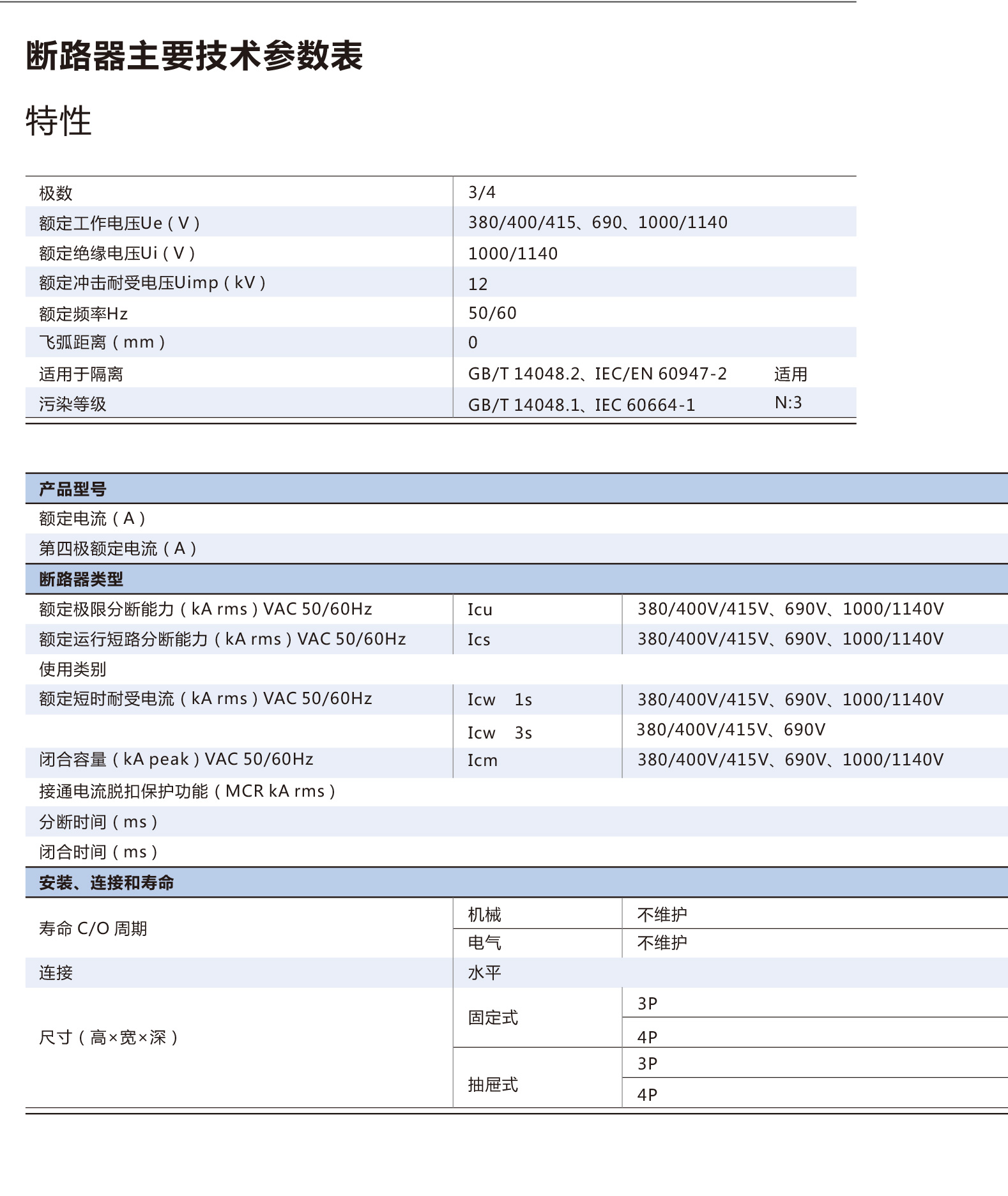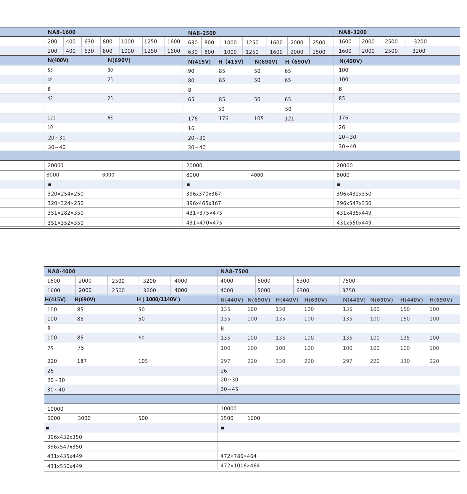 介绍: NA8系列万能式断路器(简称断路器)的额定电流自200A至7500A,额定工作电压交流400V、690V,1000/1140V适用于交流50Hz,主要用于配电网络中,用来分配电能,保护线路和电源设备,使免受过载、欠电压、短路、单相接地等故障的危害。该断路器外观艺术化,高分断、零飞弧,具有多种智能化保护功能,可做选择性保护,动作精确,避免不必要的停电,提高供电的可靠性。
