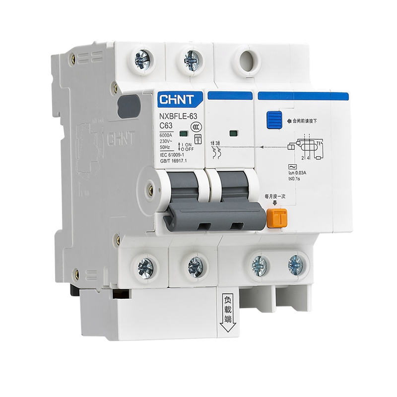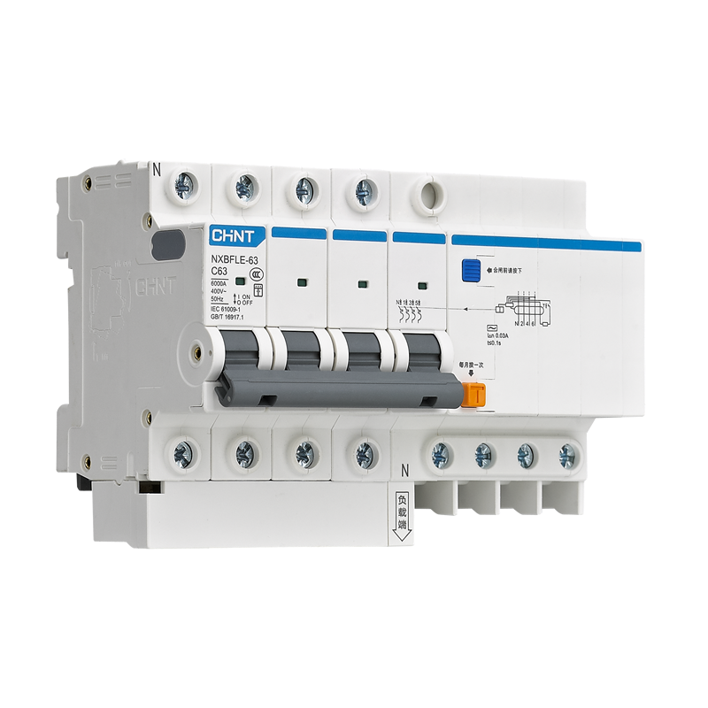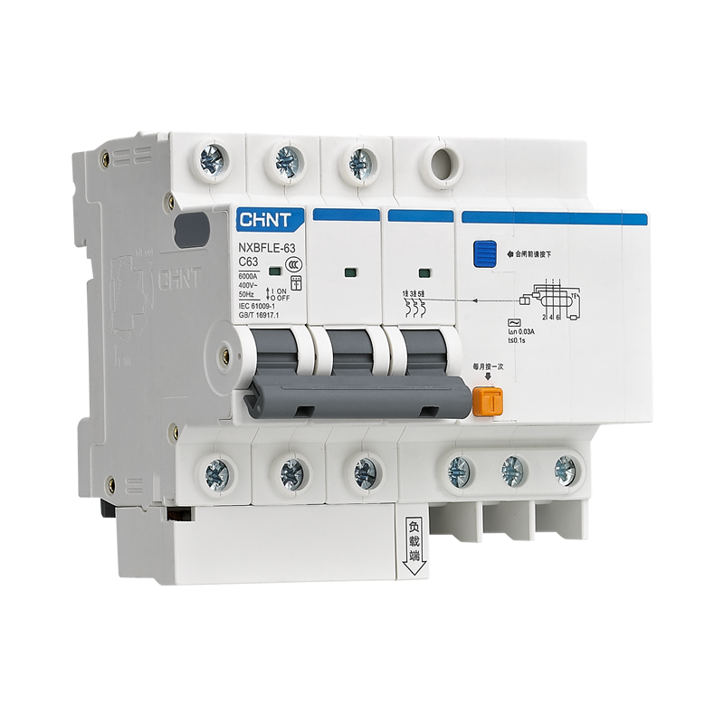 NXBFLE-63剩余电流动作断路器适用于交流50Hz,额定电压230V/400V,额定电流至63A的线路中,起过载、短路和漏电保护作用,亦可在正常情况下作为线路的不频繁通断之用。
