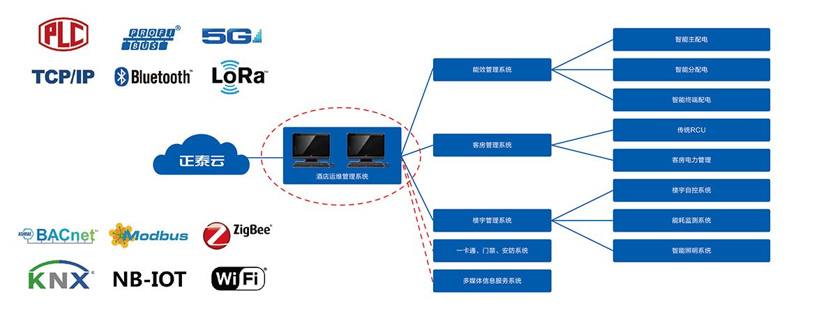 提供整套酒店运维管理系统,实现能效管理、客房管理、楼宇管理、安防、多媒体系统的一站式控制。