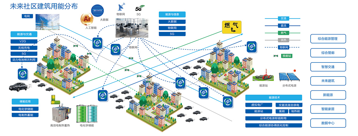 提供未来社区七大应用场景方案,多种能源互补,物联网平台统一整合,实现能源高效清洁应用。