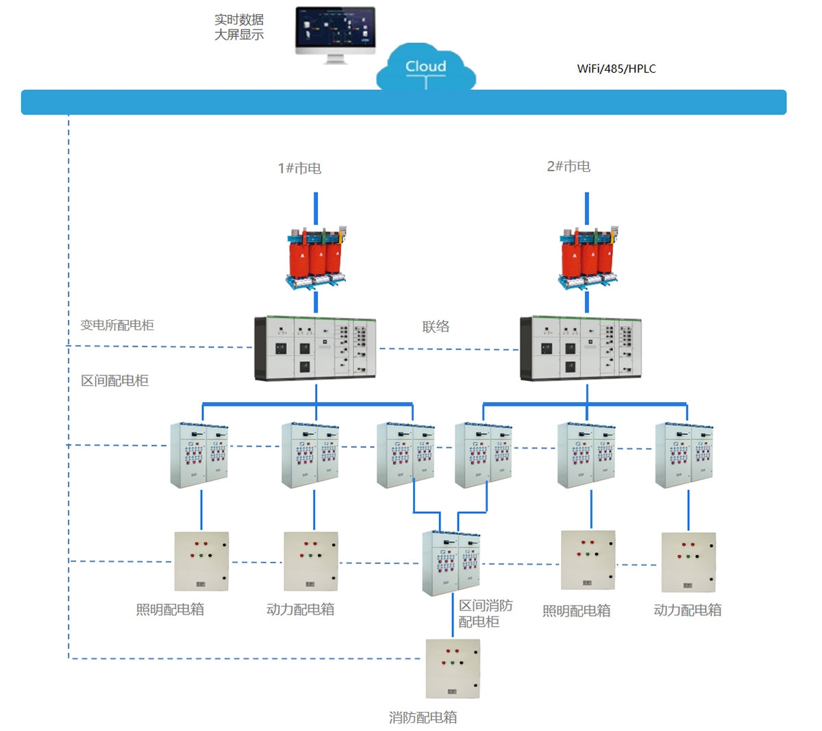 每一级用电设备可通过适宜的通讯方式获得实时数据,并对数据分析管理,及时响应,智能管控。
