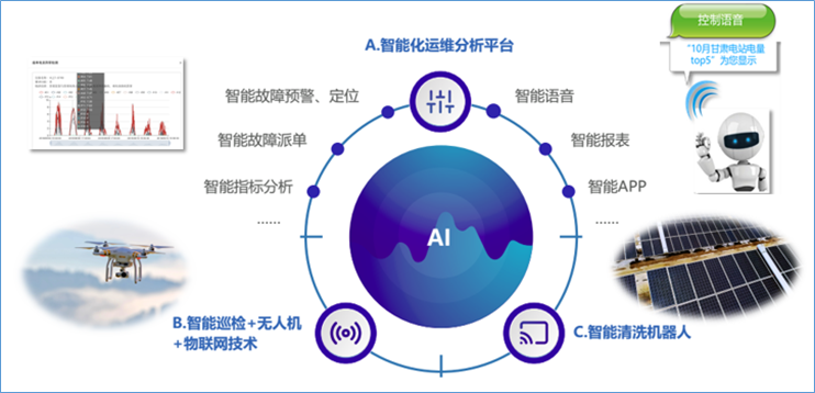 全方位智能运维手段:智能运维云平台、红外无人机系统、智能清洗机器人、智能算法及大数据