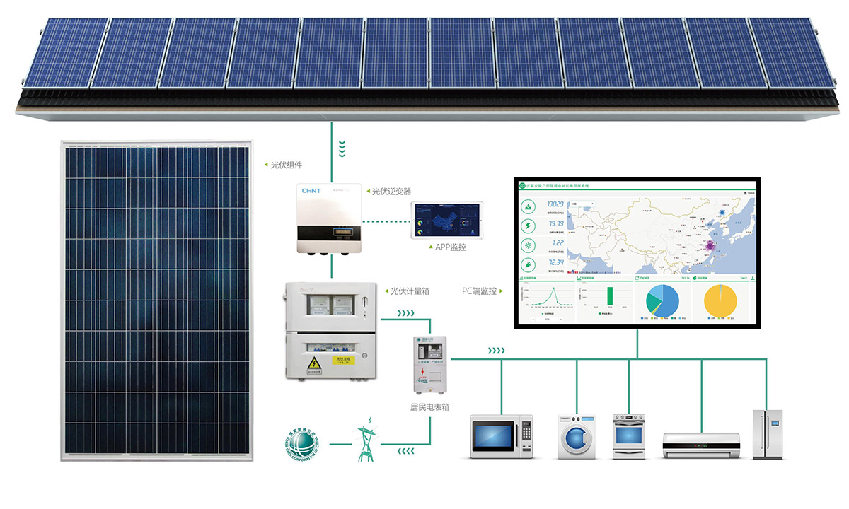 正泰为客户提供光伏系统整体解决方案以及储能、配网售电、微电网等综合能源解决方案。