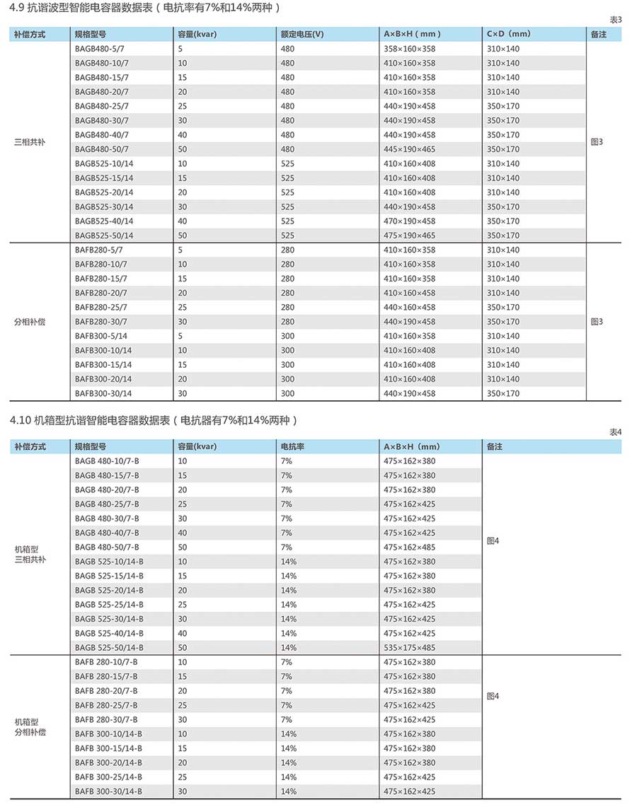 用在含有谐波电流的工矿企业时,请推荐选用带电抗的抗谐波型智能电容器或机箱型智能电容器。 符合标准:GB/T 15576-2008。